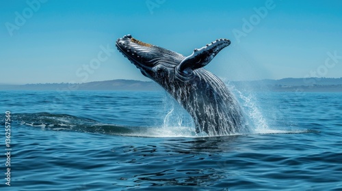 Obraz premium Majestic Humpback Whale breach captivating marine mammal breaching scenery