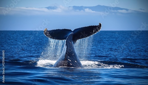 Fototapeta premium Majestic Humpback Whale Diving Beneath the Radiant Pacific Ocean Waters of...