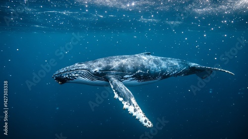 Obraz premium Majestic Humpback Whale Underwater Ocean Wildlife Photography Blue Water Nature Scene Peaceful Aquatic Animal Deep Sea Marine Life Photography Stunning Wildlife Image Breathtaking Underwater World