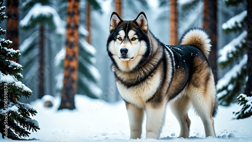 © IbragimovN, Fototapeta premium Majestic husky in snowy forest