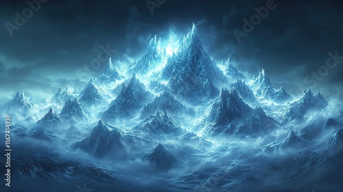 Fototapeta premium Majestic ice mountain peaks under starry night sky