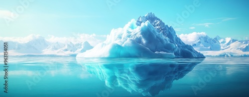 © Natawut, Obraz premium Majestic Iceberg Floating in Turquoise Water with Mountain Background