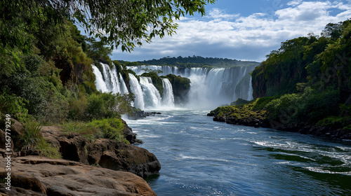 Fototapeta premium "Majestic Iguazú Falls Surrounded by Lush Greenery"