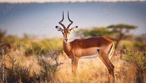 Fototapeta premium Majestic Impala Stands Proudly Against the Backdrop of an African Savanna...