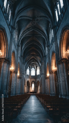 © Armen, Fototapeta premium Majestic interior of a Gothic cathedral at dusk