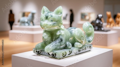 © Jojo, Fototapeta premium Majestic Jade Fox Sculpture on Display in Museum Setting