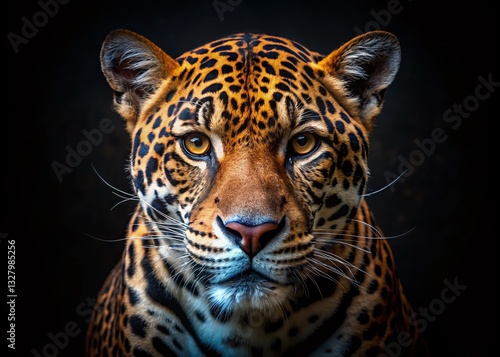 © Four888, Naklejka premium Majestic Jaguar Head Low Light Photography - Powerful Wildlife Portrait