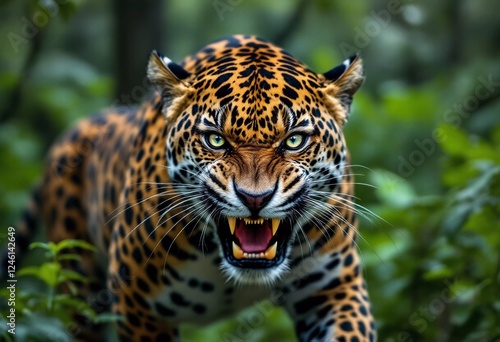 © Octopus16, Obraz premium Majestic Jaguar in the Amazon Rainforest: A Stunning Close-Up