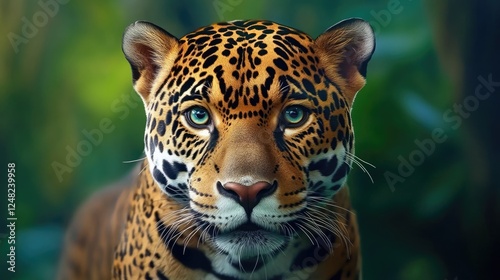 Obraz premium Majestic jaguar portrait in lush jungle wildlife photography captivating...