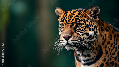 © Nadiyah, Obraz premium Majestic jaguar portrait, jungle backdrop, wildlife conservation