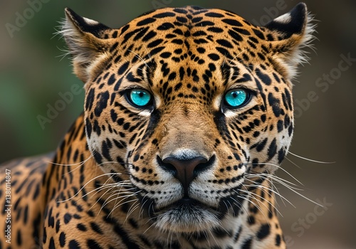 © JARVIS X, Obraz premium Majestic Jaguar Portrait with Striking Blue Eyes - Wild Animal Beauty, Big Cat Close-up, Wildlife Photography.