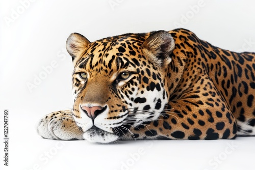 Obraz premium Majestic jaguar resting on white background