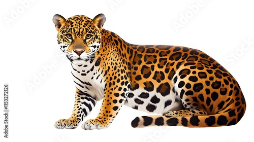 © irawan, Fototapeta premium Majestic Jaguar Sitting Against A White Background