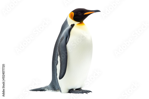 © Putt_Sanplee, Fototapeta premium Majestic King Penguin's Grace: A regal king penguin stands in profile, its elegant black and white plumage and vibrant yellow markings, in a pristine environment.