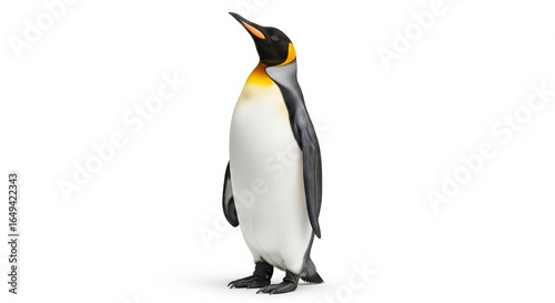 © Ari, Fototapeta premium Majestic King Penguin standing and looking up, isolated transparent background