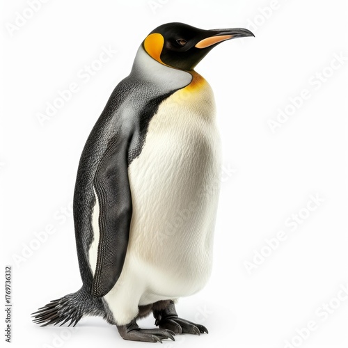 © nsit0108, Fototapeta premium Majestic king penguin standing in profile on a pure white background