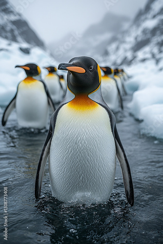 Fototapeta premium Majestic King Penguins in the Glacial Waters of Antarctica Expedition