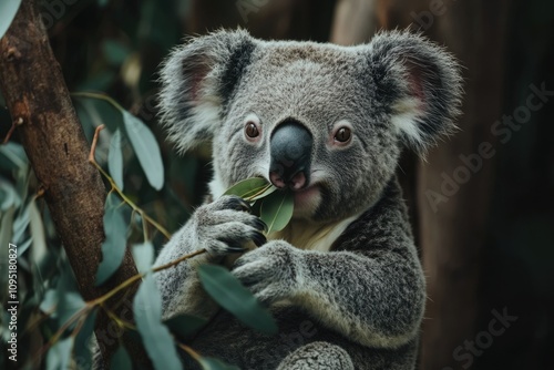 Obraz premium Majestic Koala Bear Eating Eucalyptus Leaves