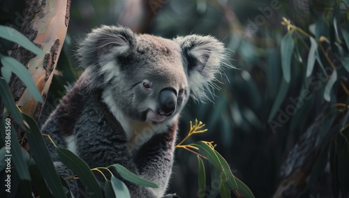© Darya, Fototapeta premium Majestic Koala Clinging to Eucalyptus Branch