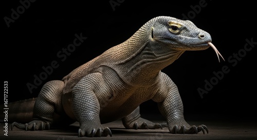 Obraz premium Majestic Komodo Dragon Portrait Captured in Striking Detail with black...