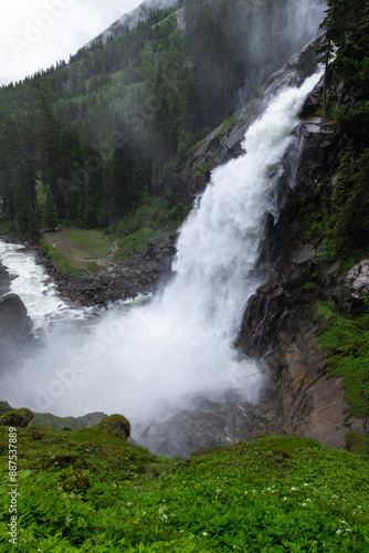 Naklejka premium Majestic Krimml Waterfall in Austria's Summer Splendor