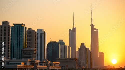 © pinky, Fototapeta premium Majestic Kuwait City - Sunset Panorama