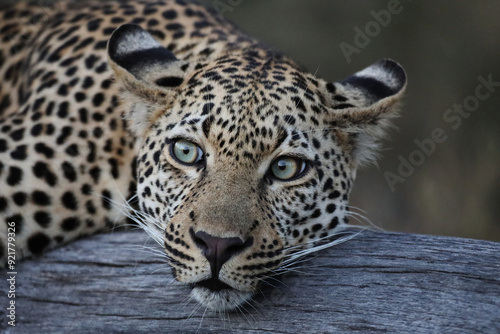 Naklejka premium Majestic Leopard in Natural Habitat – Close-Up Shots and Dynamic Wildlife...