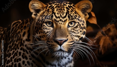 Obraz premium Majestic Leopard Lounging in the Golden Hues of the Serengeti Savannah,...