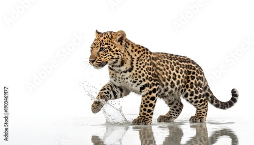 © Maya, Fototapeta premium Majestic Leopard Walking Gracefully on White Background.