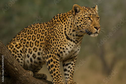 © Masud, Naklejka premium Majestic leopard with spotted coat in natural habitat