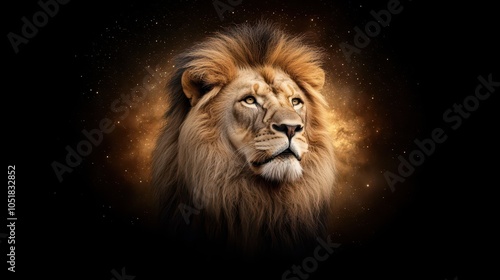 © Namthip, Fototapeta premium Majestic Lion Against Stardust