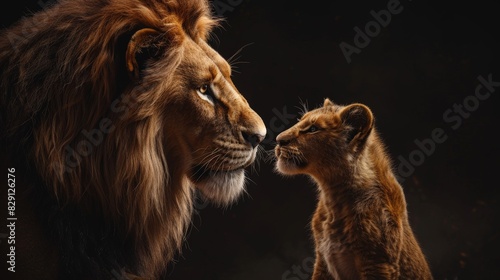 © Balaraw, Naklejka premium majestic lion and cub in close encounter