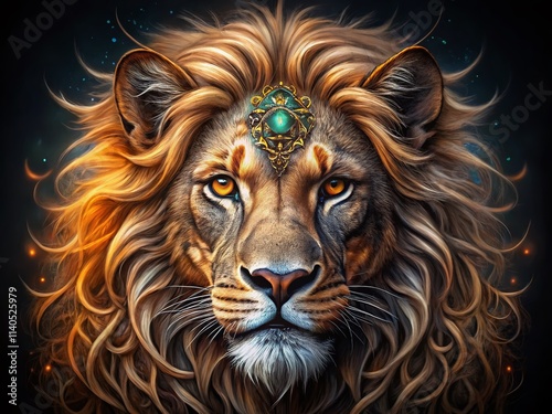 © Danicha, Fototapeta premium Majestic Lion Eyes Tattoo - Long Exposure Photography Art