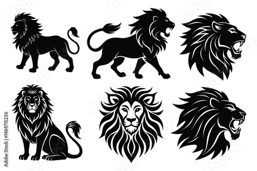 Obraz premium Majestic Lion Face and Full Body Vector, Tribal Style Graphics
