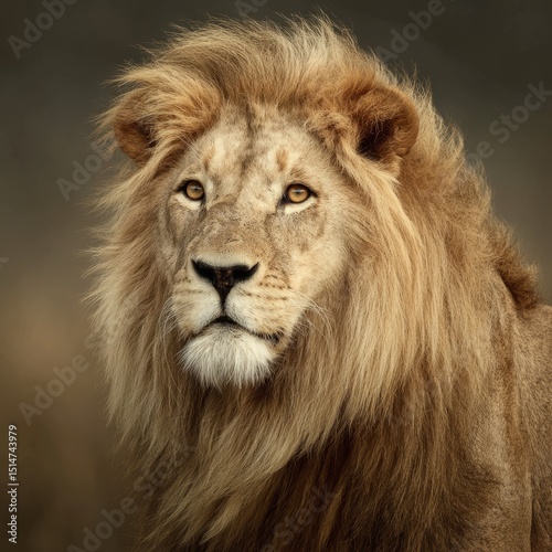 Obraz premium Majestic lion gazes into the distance, surrounded by soft earthy tones in the...