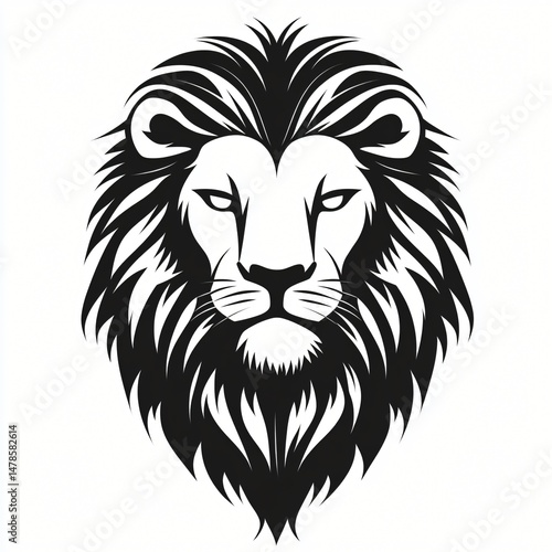 © WisChi, Fototapeta premium Majestic Lion Head Silhouette Powerful Black and White Illustration