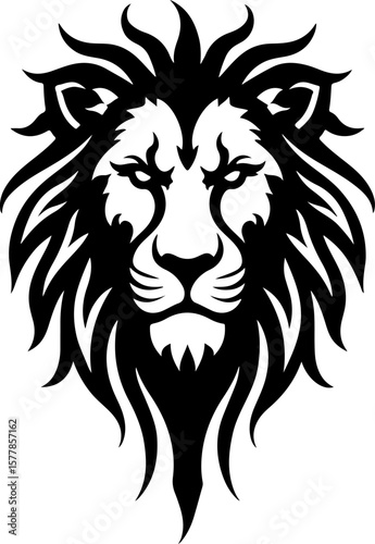 Obraz premium Majestic Lion Head Tribal Tattoo | Vector Silhouette Design"