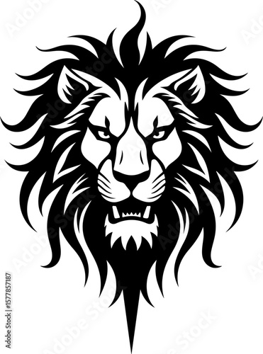 Obraz premium Majestic Lion Head Tribal Tattoo | Vector Silhouette Design