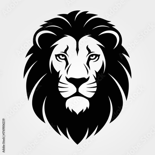© islak, Fototapeta premium Majestic lion head vector art in black and white.