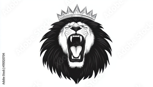 Obraz premium Majestic Lion Head with Crown Emblem in Black and White Design