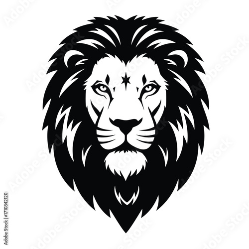 © RMvectors02, Fototapeta premium Majestic lion head with detailed mane and a shining star silhouette