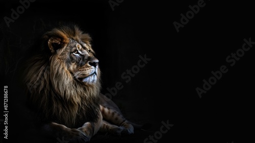 © arsya, Fototapeta premium Majestic Lion in the Darkness
