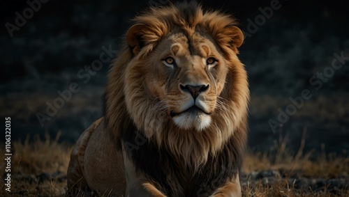 © claudunia, Fototapeta premium Majestic lion isolated against a black background.