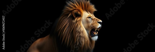 Fototapeta premium Majestic Lion King with flowing mane isolated on black background, mane,...
