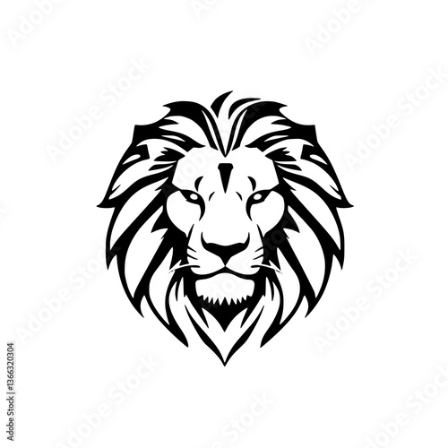 Fototapeta premium Majestic Lion Portrait: A striking, stylized black and white illustration...