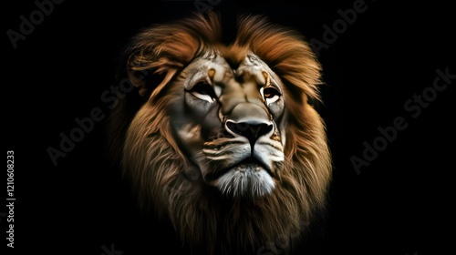 © cllareta, Fototapeta premium Majestic lion portrait against a black background. (1)