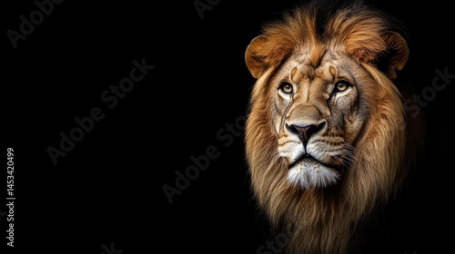 Fototapeta premium Majestic Lion Portrait Against a Black Background