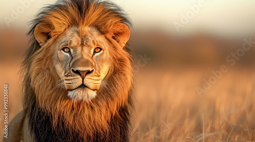 Obraz premium Majestic Lion Portrait in Golden Sunset Light