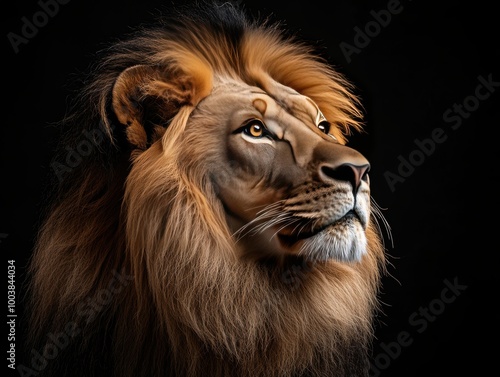 Fototapeta premium Majestic Lion Portrait on Black Background
