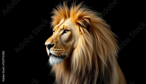 Fototapeta premium Majestic lion portrait, side profile, regal pose, golden mane flowing